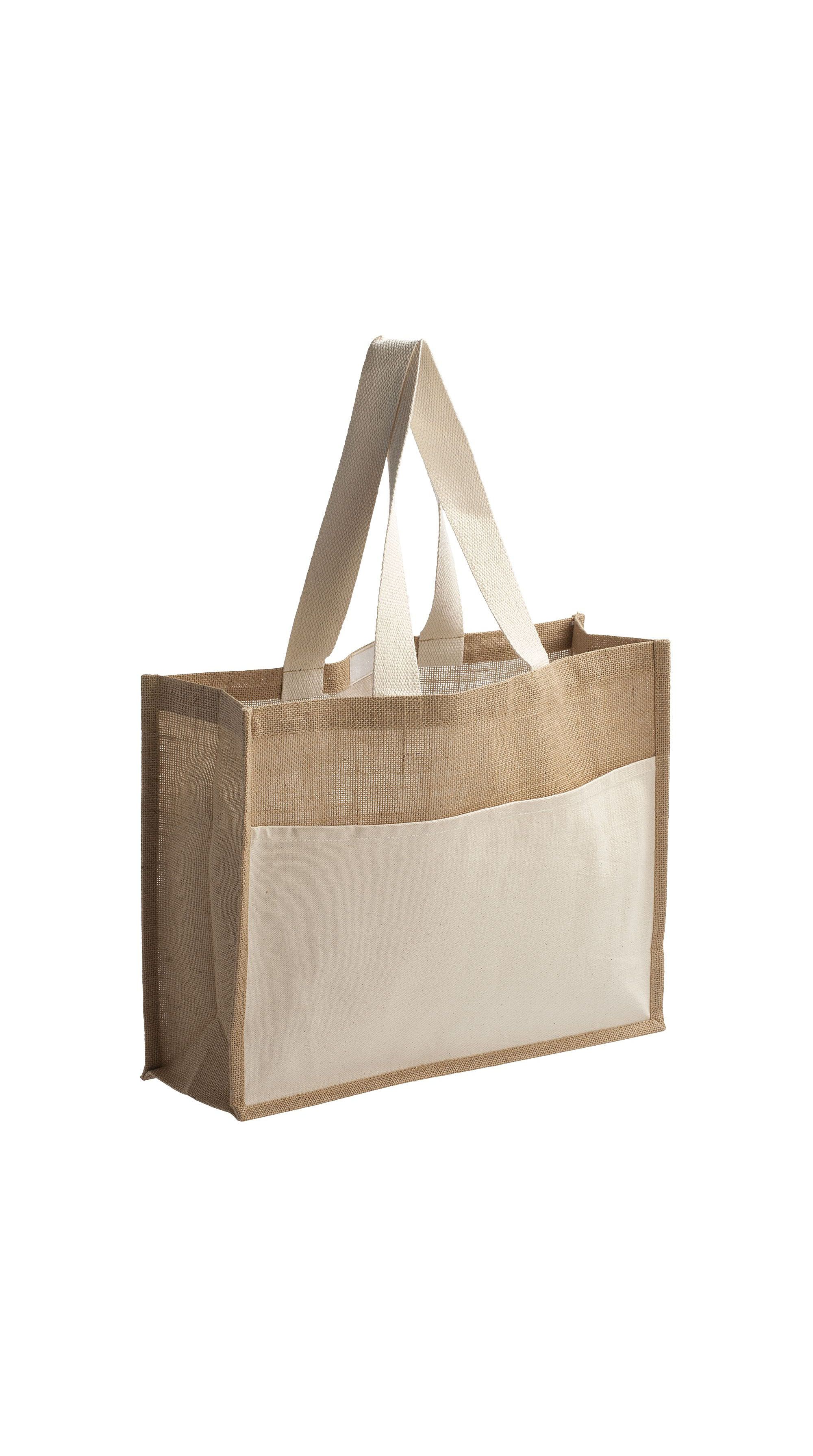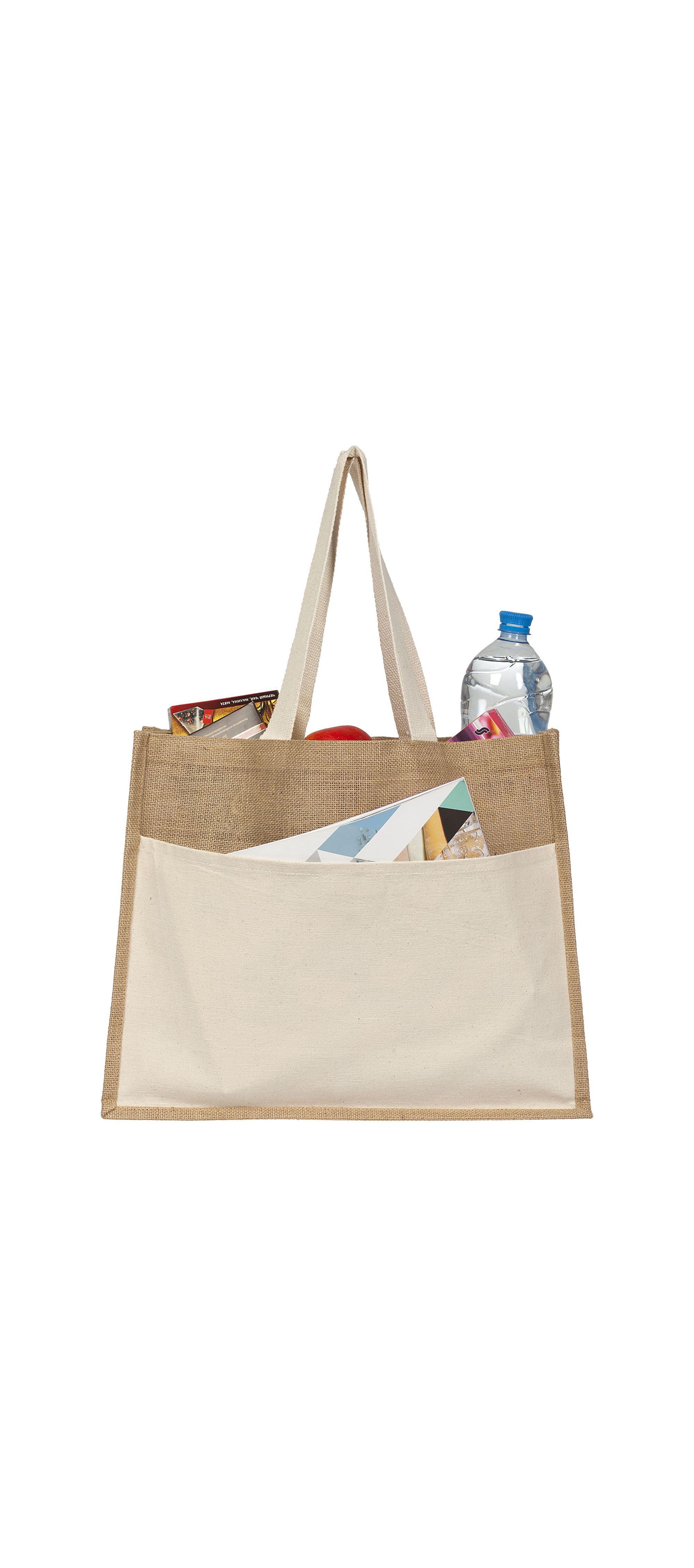 | Материал: джут, плотность 240 г/м²; ручки, карман - хлопок, плотность 280г/м² |